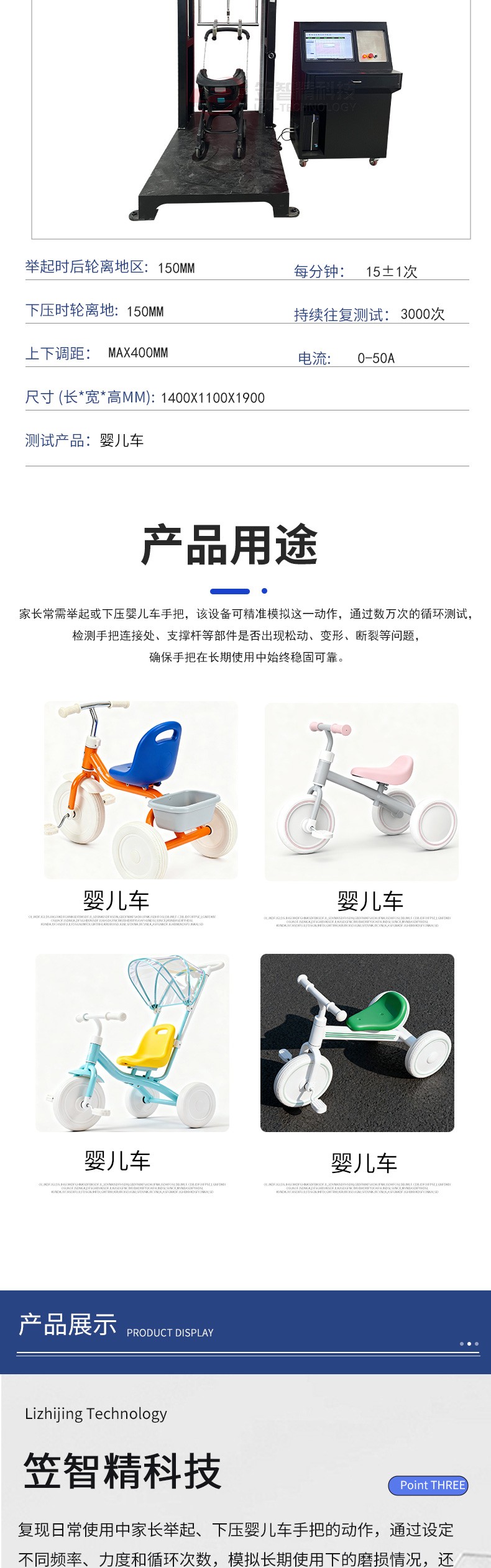 首页 >> 產(chǎn)品中心 >>嬰兒車 代步車 輪椅車試驗機 >>代步車 輪椅車試驗機 >> 兒童車抬起下壓疲勞耐久測試機 嬰兒車手把舉起下壓疲勞試驗機